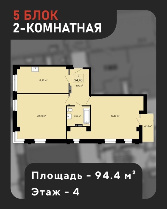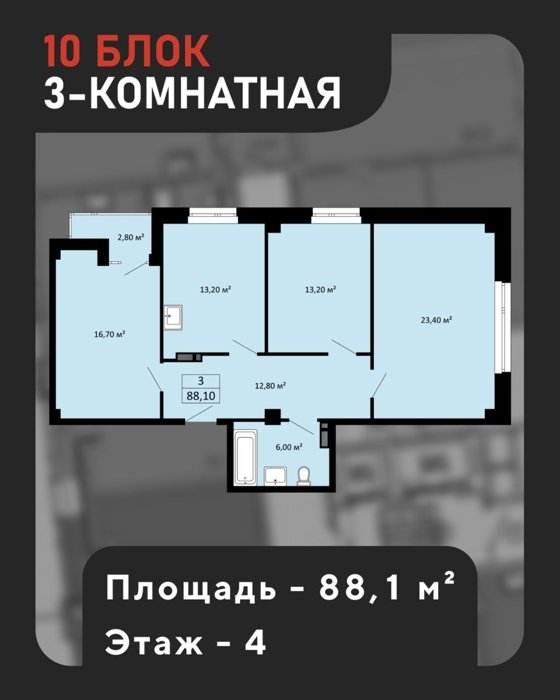 Площадь от 88.1 м2