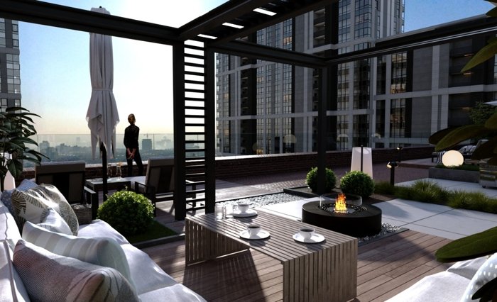 Приватная лаундж-зона на эксплуатируемой кровле ЖК «Атриум» — это место силы с панорамным видом на вечерний город и звёздное небо. Здесь можно устроить романтический ужин при свечах, встретить рассвет с бокалом кофе или просто побыть в тишине над суетой, не спускаясь вниз.