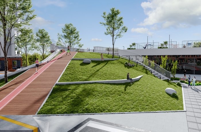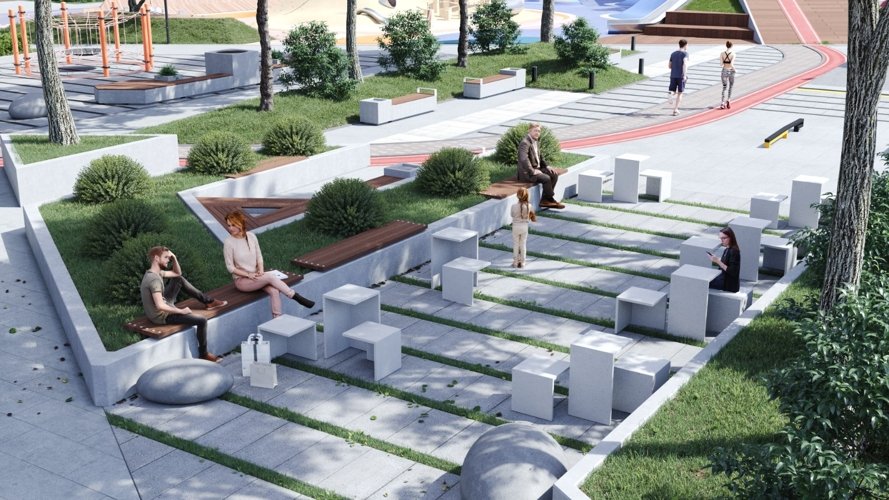 Гектар зелени с тенистыми аллеями, хвойными деревьями и зонами тихого отдыха — ваш приватный парк, где можно гулять, дышать и забывать о городе, не покидая его центра.