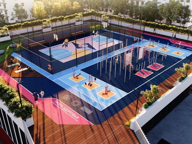 Современная воркаут-зона и универсальная спортплощадка с профессиональным покрытием расположены в зелёном сердце «Атриума». Воркаут-зона — для силовых тренировок на свежем воздухе, игровая площадка — для футбола, баскетбола и волейбола. Всё рядом с домом, бесплатно и круглый год.